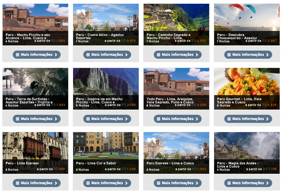 Tem pelo menos três pacotes com o destino e outros pontos bacanas, o que mais gostei é o Enigmas do Peru – Lima, Paracas e Cusco.