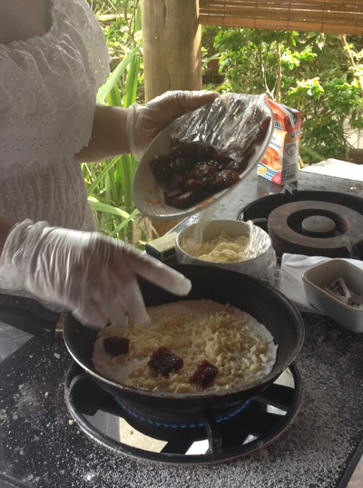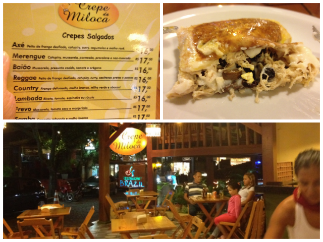 Quem conhece Arraial vai passar pela rua Mucugê, famosa pelas lojas, bancos e restaurantes. Um dos restaurantes que fomos da rua é a Crepe da Miloca. O crepe da foto acima é o Reggae: peito de frango desfiado, curry, requeijão cremoso, azeitonas e uva-passa, o mais gostoso dos que provamos.
