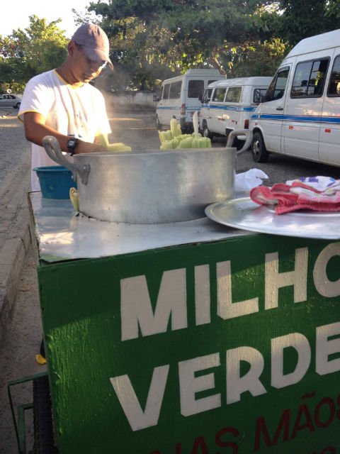 Como o hotel que ficamos hospedados era na saída da balsa, era comum vermos vários ambulantes vendendo comida para os que aguardam o horário da balsa. Meu lanche da tarde era um milho verde e, quando estava com mais fome, já pedia dois e reservava o do dia seguinte.
