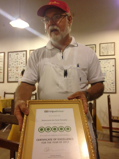 Para não se arrepender, lembre do Paulinho Pescador. Um senhor de boné, camisa polo e bermuda, simpático e muito falador. Daqueles que gruda na mesa e conta a história do restaurante e mostra com orgulho o quadro do TripAdvisor: