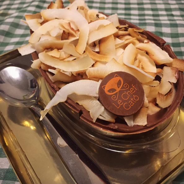 Grand Delice Duo de Coco e Brigadeiro, da Le Chef Gatô, é daqueles ovos grandes, parrudos, bem recheado, e que você não consegue comer sozinho. Ele é tão grande e pesado que você não vai querer comer sozinho, vai dividir com os amigos ou com a família. Se for sua primeira vez na loja, prove alguns brigadeiros e o bombom de morango!