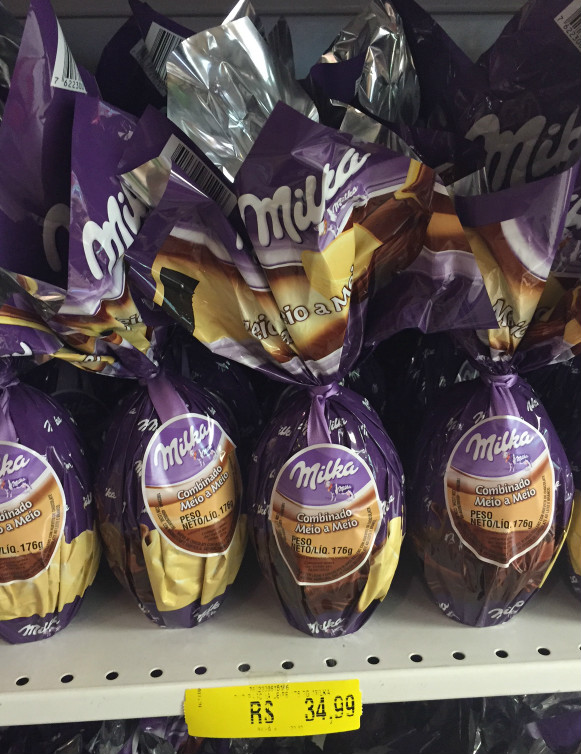 Esses ovinhos de chocolate amargo com ao leite são tão bons que podiam ser vendidos o ano inteiro! Dos mercados que passei até agora, o Sonda é o mais barato, mas os ovinhos podem chegar a 24,90. Então, pesquise antes e não compre no impulso.