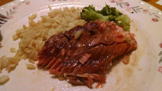 Como a Midori comentou no post sobre os colaboradores, estou morando na casa de uma família bem legal e que adora comidas saudáveis. Entre as minhas aventuras gastronômicas por aqui, teve um jantar com salmão temperado no shoyo (acredito eu), brócolis e arroz (sim, arroz, e dos gostosos) e um suco de maçã que é bom até. E, é bom ressaltar: Nem só de fast food se vive nos States!