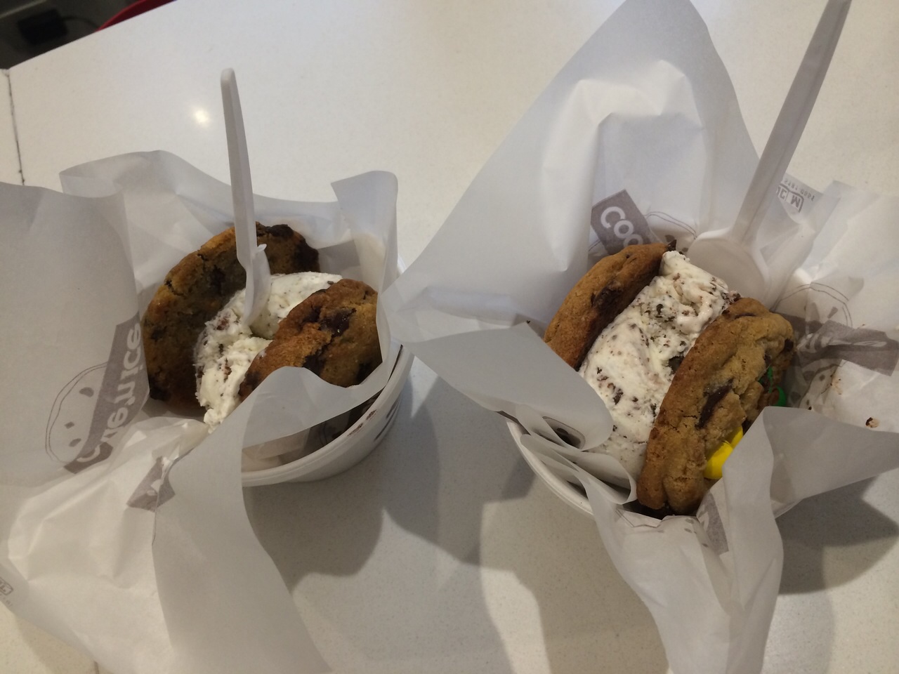 Fui com a minha amiga Fê Klüpple conhecer o famoso sanduíche de sorvete, o Cookie’n Ice, que fica perto do shopping Ibirapuera, na rua Moaci, em Moema.