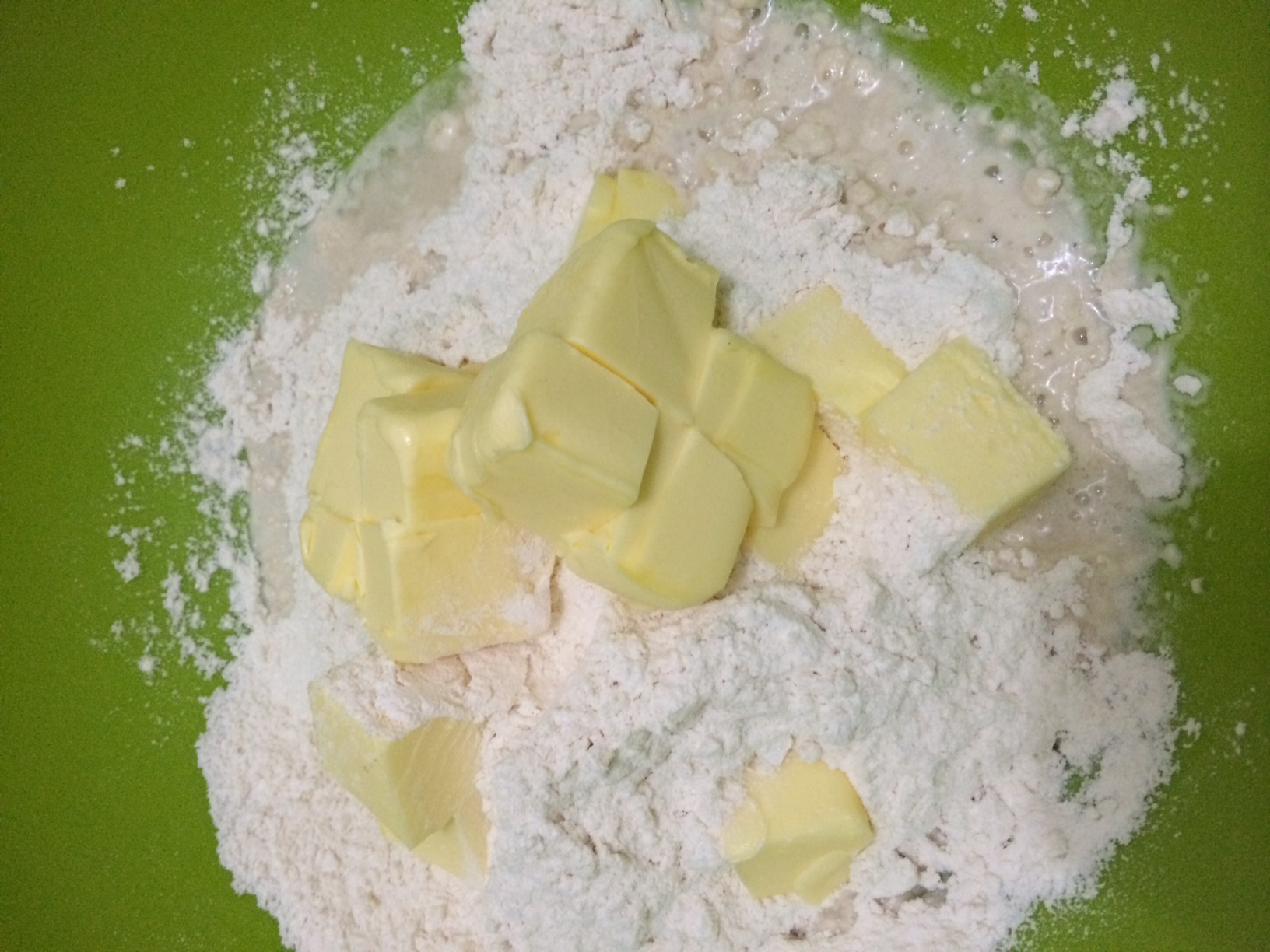 A imagem acima é da primeira massa que fiz e precisei jogar, como acrescentei água antes, a massa ficou uma meleca, a manteiga já não estava mais tão gelada. Por isso, é importante seguir a ordem dos ingredientes!