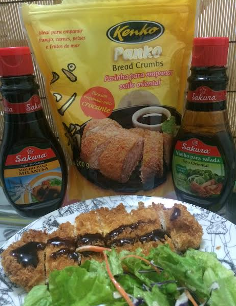 Embora o tonkatsu, sugestão enviada pelo pessoal do Clube Sakura, seja feito com a carne de porco, a farinha Panko é muito boa para empanar outras carnes e testei com frango. O resultado foi o mesmo, muito bom!