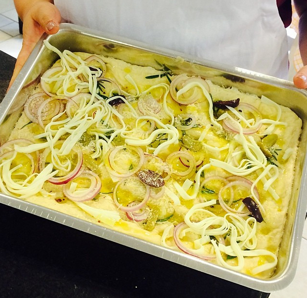 Quarta tive uma super aula promovida pela Fleischmann com vários pães deliciosos, mas a receita que me fez esquecer que devo evitar glúten foi a da Focaccia, uma delícia! E é ela que resolvi colocar aqui: