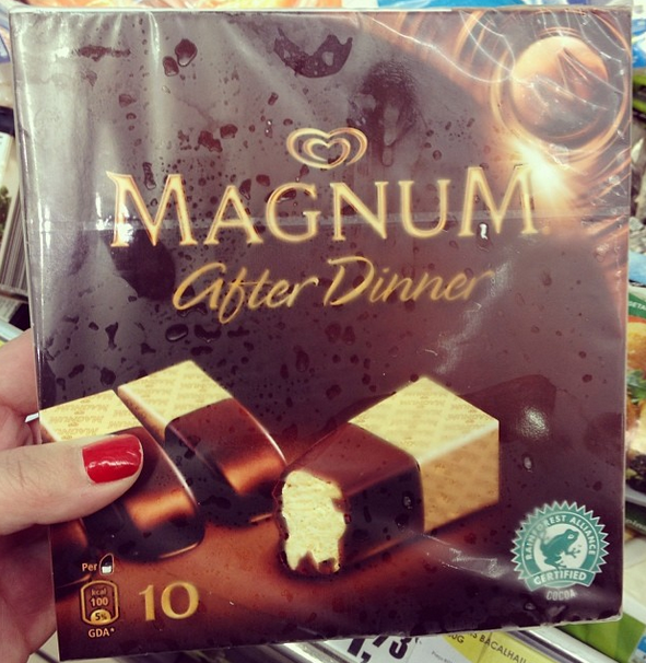 Se não fosse a viagem que fiz em novembro do ano passado para Portugal, permaneceria contente com os picolés da linha Magnum comercializadas no Brasil. Mas, depois de ver que a linha é enorme, com sabores deliciosos, fiquei um tempo choramingando nas redes sociais que deveriam vender no Brasil a versão do Magnum Mini.