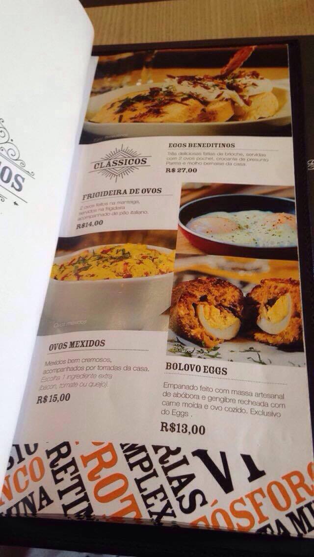 Para quem tem curiosidade, veja algumas fotos do cardápio do Eggs Comfort Food, é só clicar na imagem para visualizar melhor!