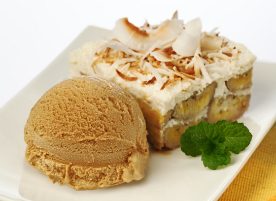 8-Retire do forno e cubra com 6 bolas do sorvete KIBON sabor DOCE DE LEITE. Sirva em seguida.
